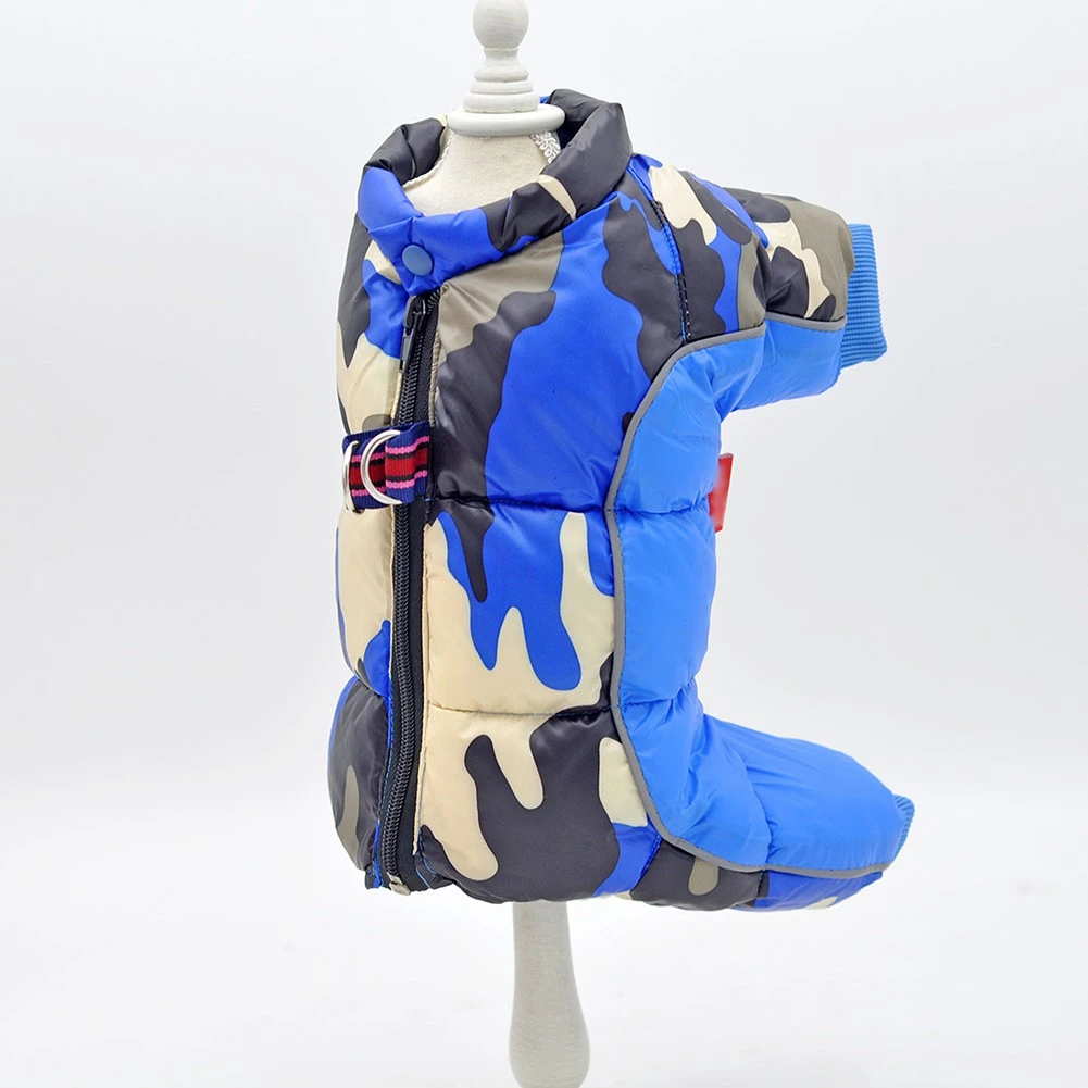 Designed for comfort and mobility, it’s easy to put on and provides full coverage to shield your dog from wind, rain, and snow. Stylish yet practical, this jumpsuit-style coat ensures your furry friend stays warm, dry, and adorable all winter long.